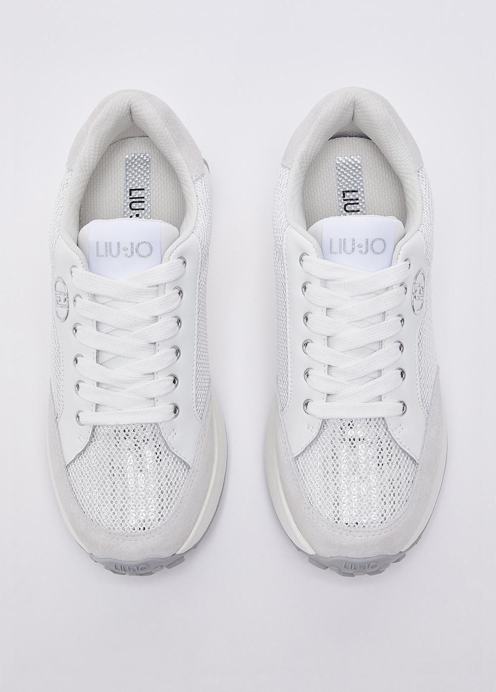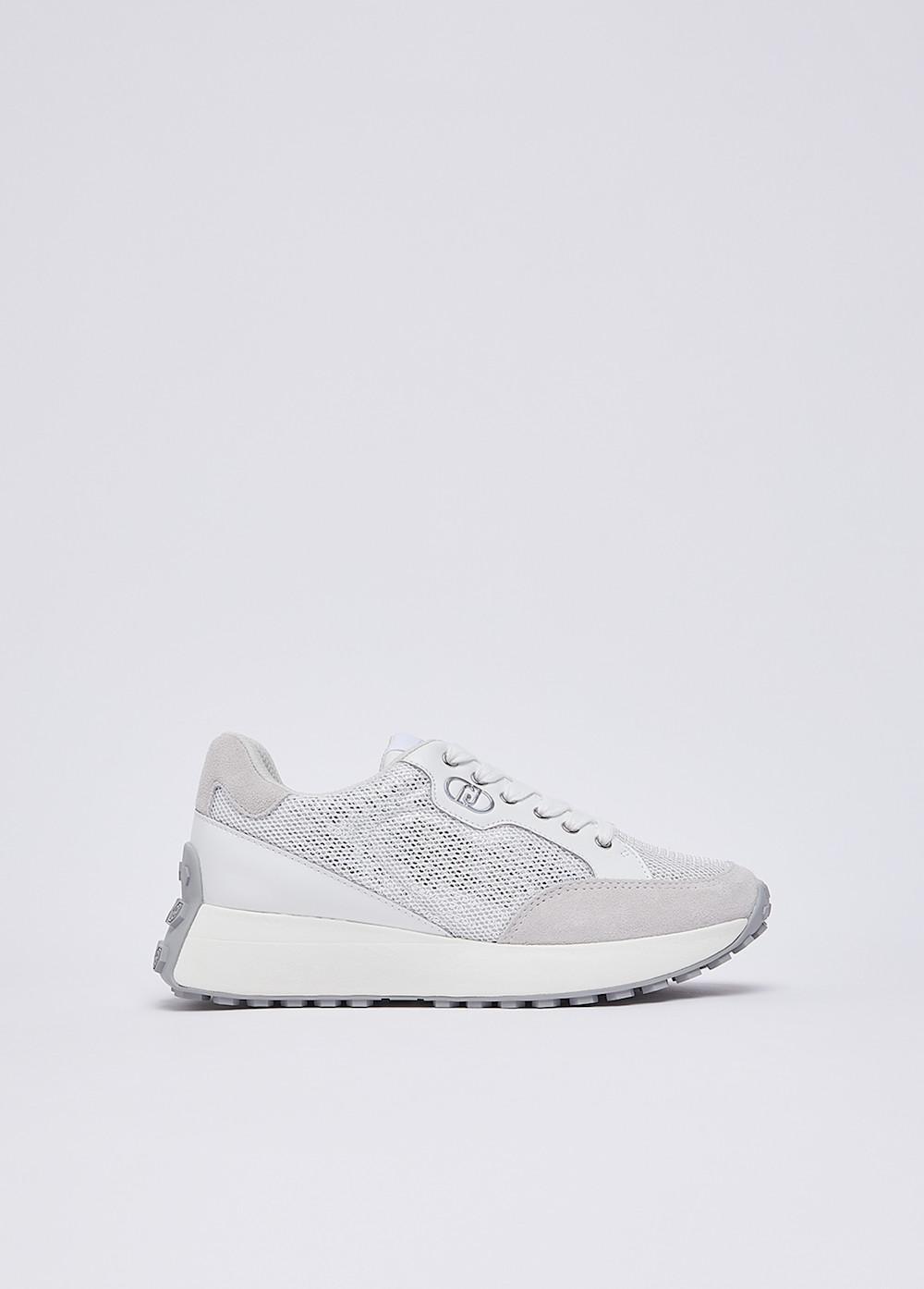 Sneakers with mesh and sequin upper in gray/silver/white combination