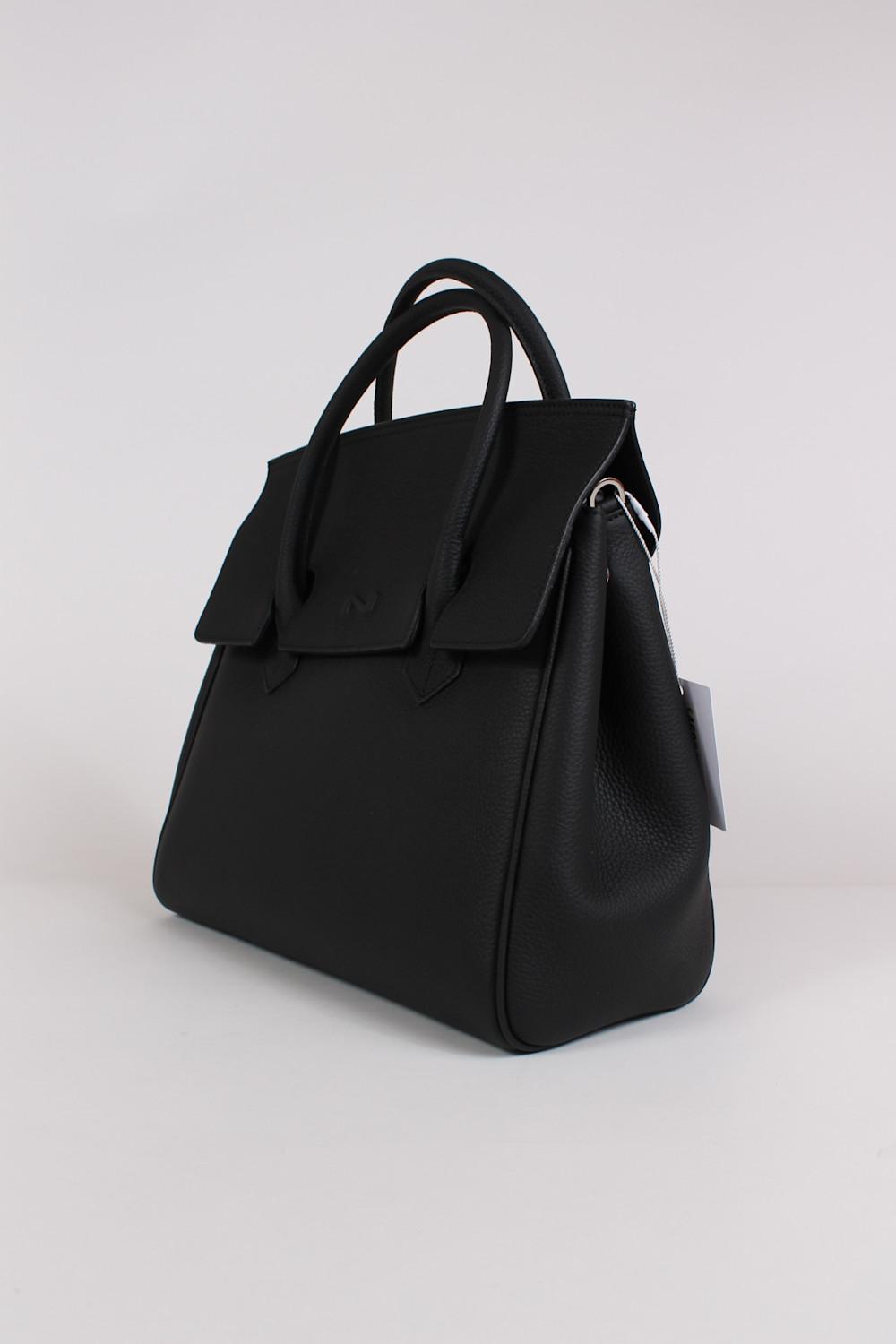 Ce sac à main, modèle Clara, de Belgian Nathan possède un petit rabat sur toute la largeur du sac avec fermeture magnétique.