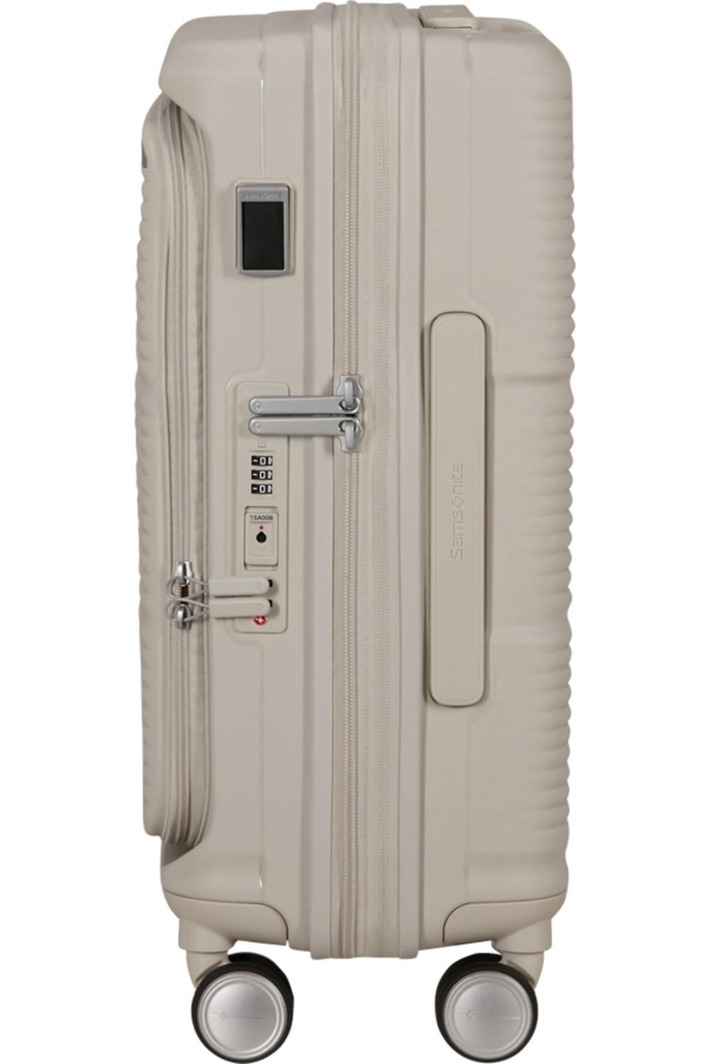 Valise cabine haut de gamme de la collection Paralux de Samsonite avec 4 roulettes, idéale pour les courts trajets et les voyages d'affaires.