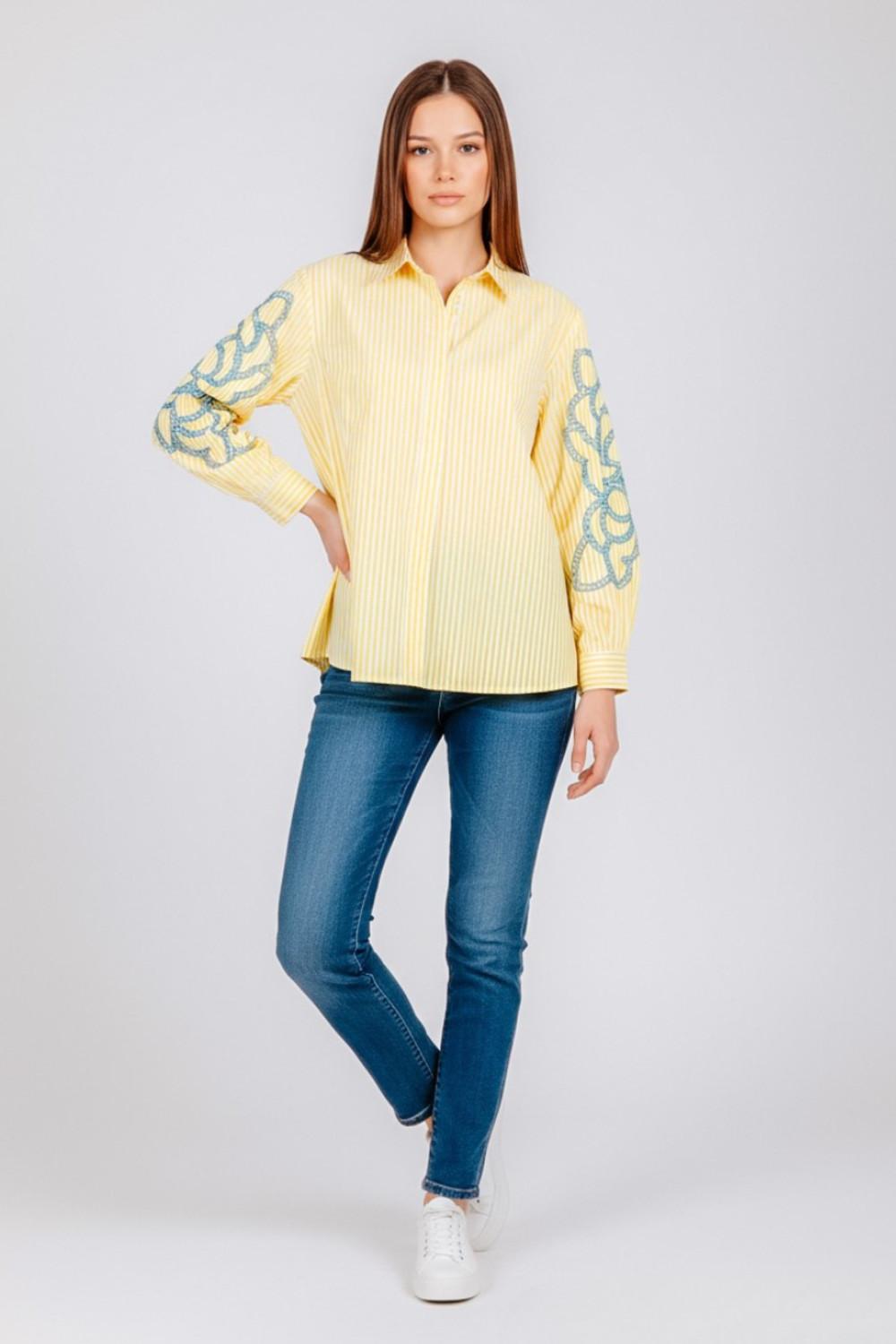 Chemise en coton de Senso, jaune à rayures blanches