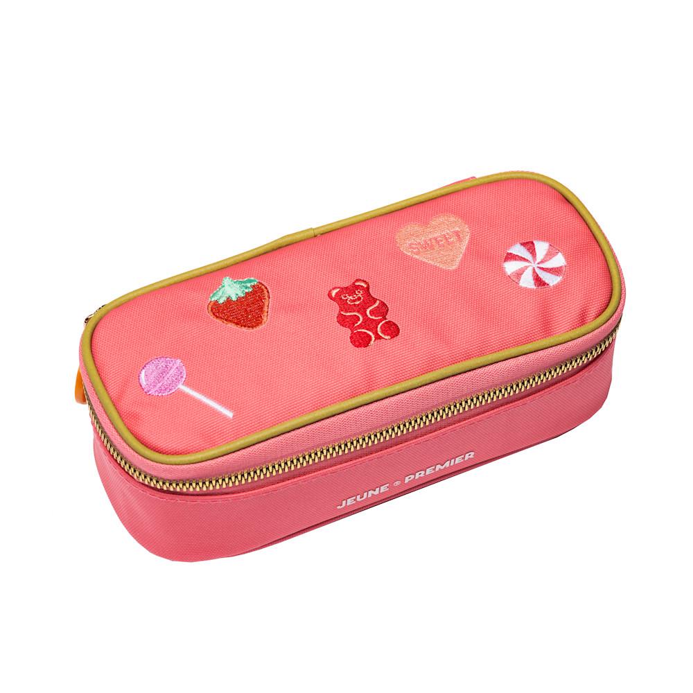 Deze grote Candy pennenzak is praktisch en hip! Steek je pennen, potloden, meetlat en andere kleine schoolspullen in deze ruime pennenzak en je bent klaar voor een drukke schooldag. Sluit de stevige rits van deze pennendoos en alles blijft mooi op zijn plaats. De pennenzak is super leuk in combinatie met de prachtige bijpassende boekentassen.
