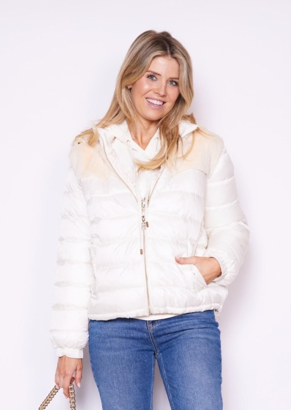 Afgewerkt met zachte faux-fur schouderpartij en kap