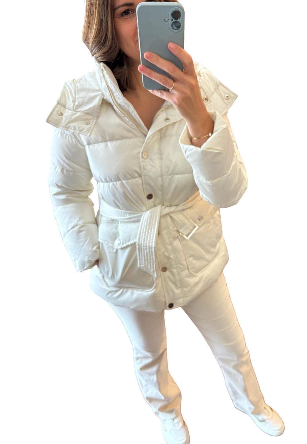 Glanzend nylon in wit met gewatteerde afwerking