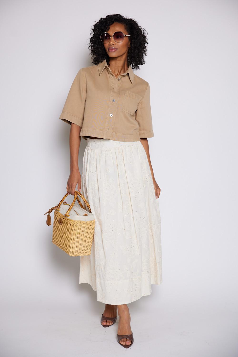 Luchtige stof in ecru met bloemenpatroon en subtiel glittereffect in de stof (Lurex®)