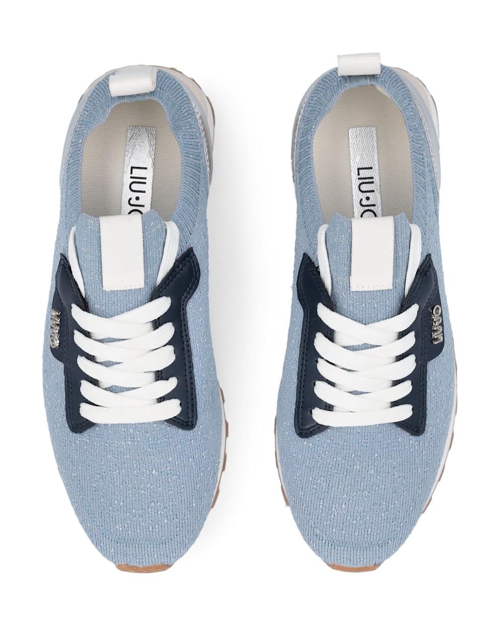 Comfortabele blauwe, elastische sneakers met subtiel glittereffect