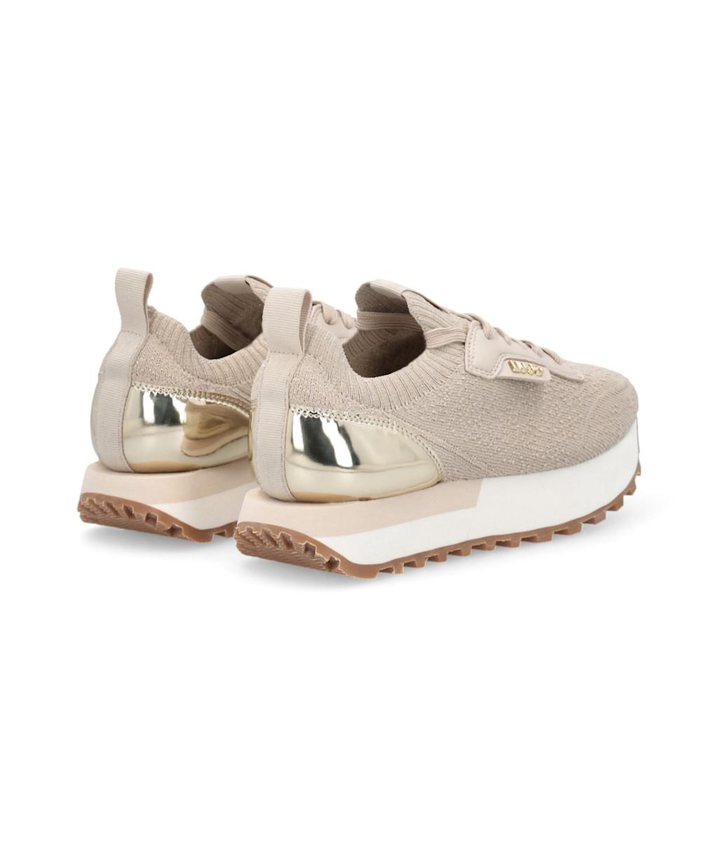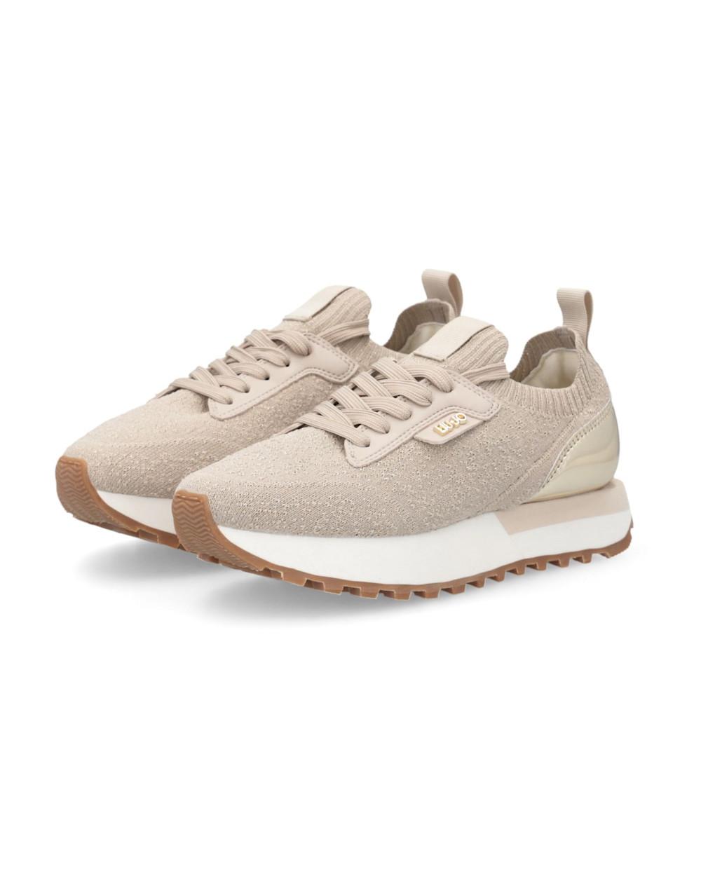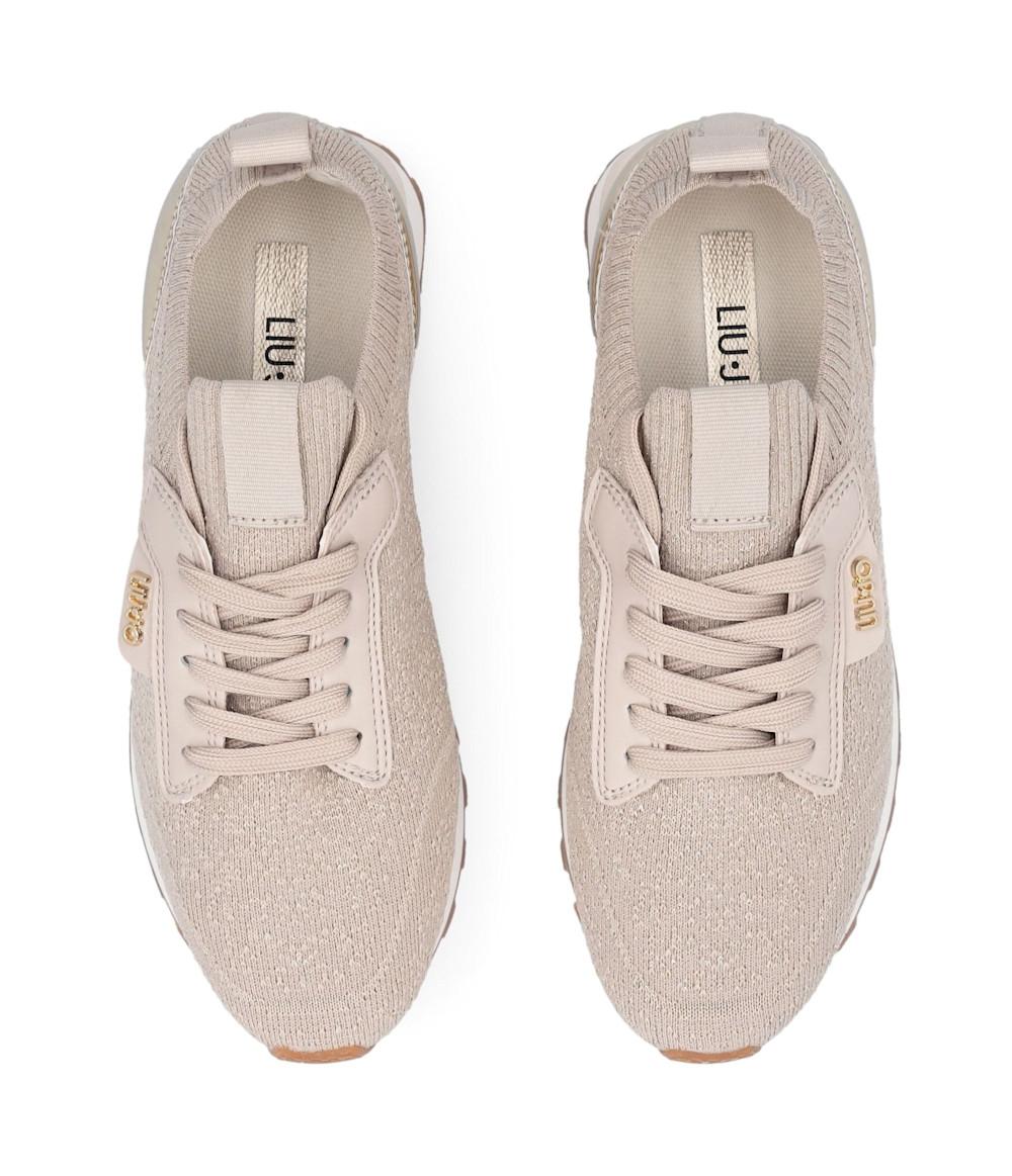 Comfortabele beige, elastische sneakers met subtiel glittereffect
