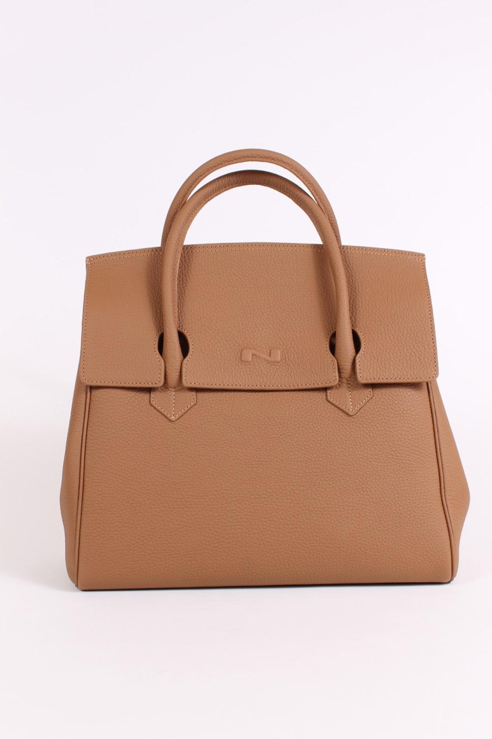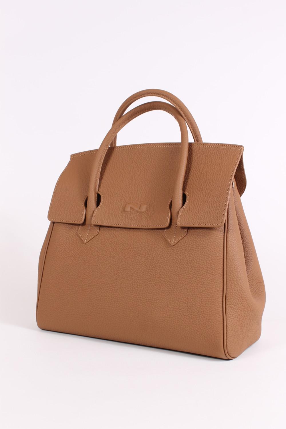Deze handtas, model Clara, van het Belgische Nathan-Baume heeft een kleine flap over de hele breedte van de tas met magneetsluiting.