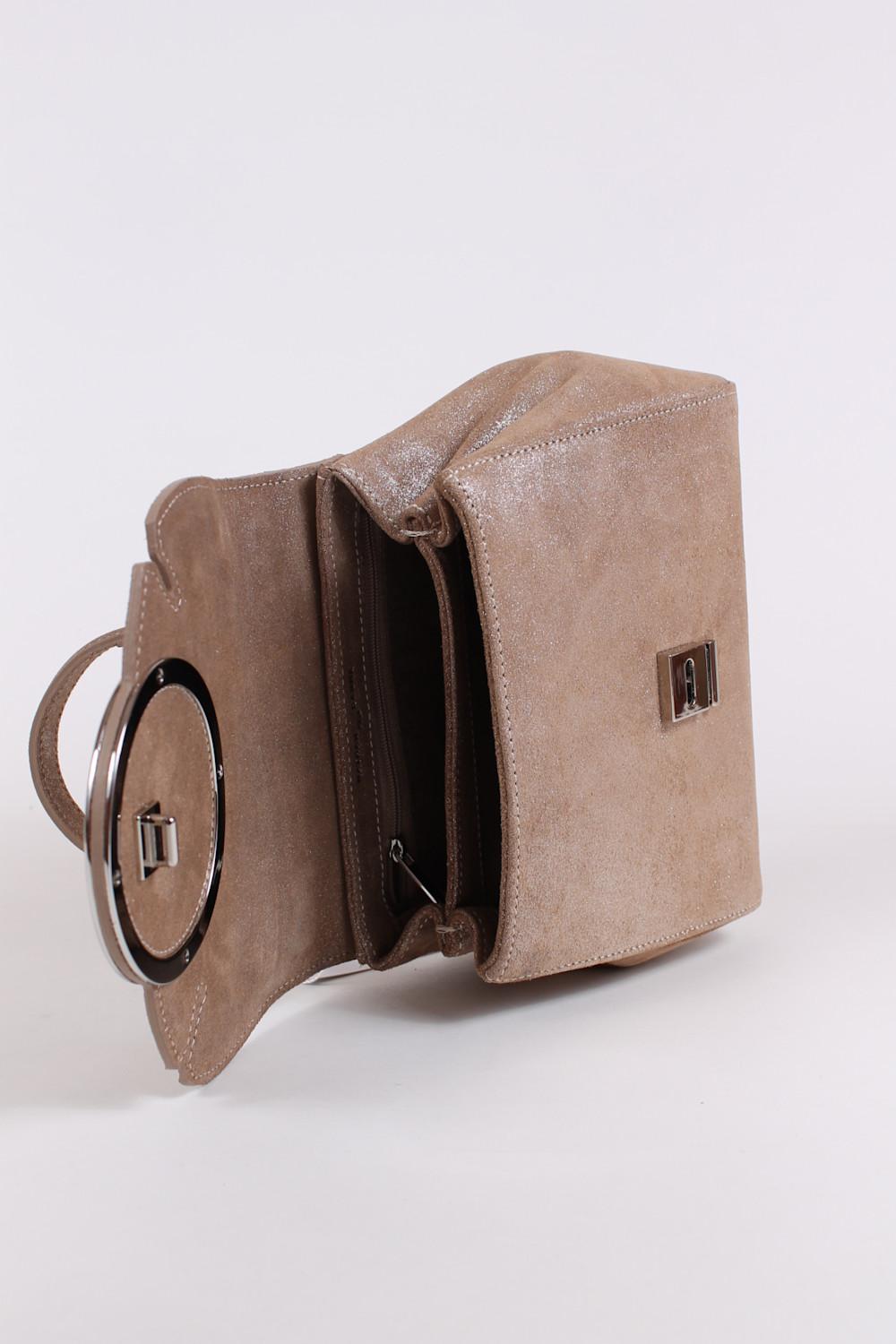 Deze tas draag je in de hand of langs de schouder met de afneembare lange riem.