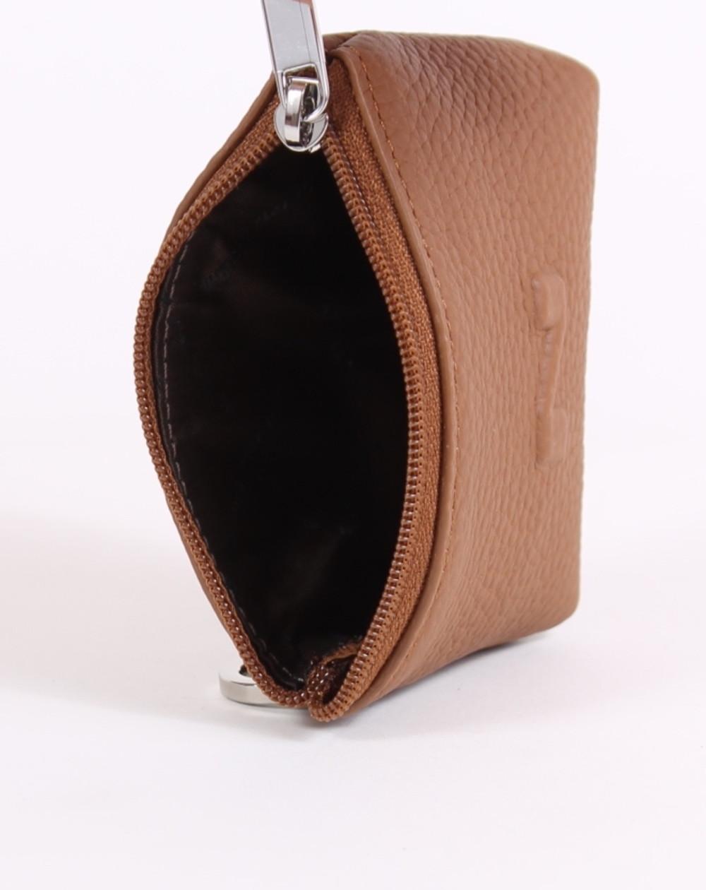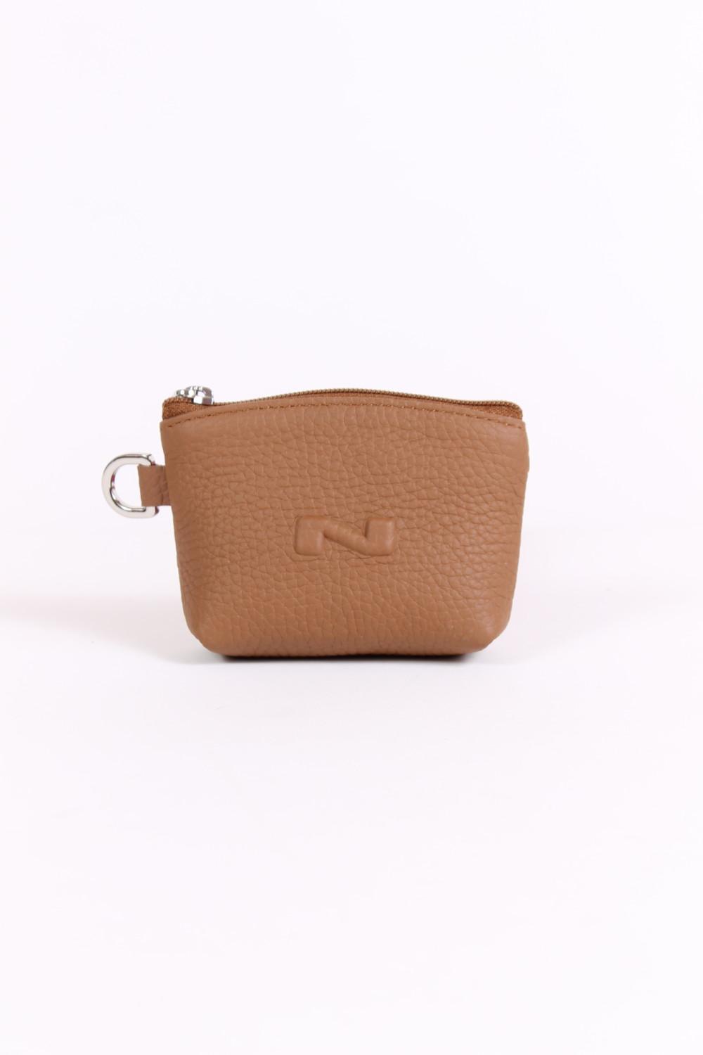 Lederen zakje van het Belgische Nathan-Baume voor kleingeld, helemaal gesloten met een rits.