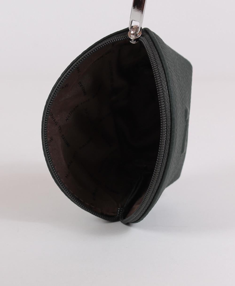 Ruim lederen zakje voor kleingeld van het Belgische Nathan-Baume, helemaal gesloten met een rits.